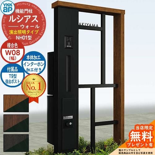 YKKap 機能門柱 ルシアス ウォールNH01型 W08 演出照明タイプ(100V照明) T9型・宅配ボックスセット