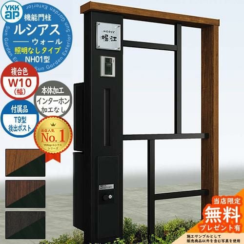 YKKap 機能門柱 ルシアス ウォールNH01型 W10 照明なしタイプ T9型・宅配ボックスセット