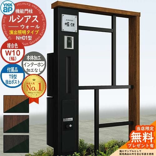YKKap 機能門柱 ルシアス ウォールNH01型 W10 演出照明タイプ(100V照明) T9型・宅配ボックスセット