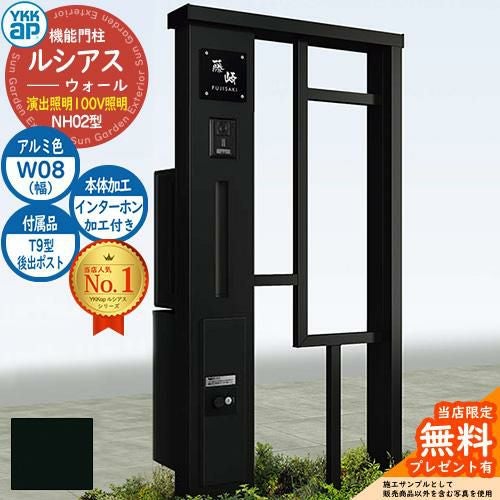 YKKap 機能門柱 ルシアス ウォールNH02型 W08 演出照明タイプ(100V照明) T9型・宅配ボックスセット