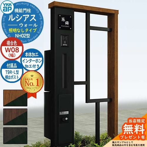 YKKap 機能門柱 ルシアス ウォールNH02型 W08 照明なしタイプ T9R(L)型・宅配ボックスセット