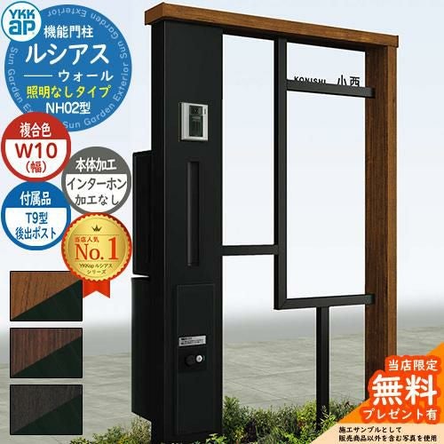 YKKap 機能門柱 ルシアス ウォールNH02型 W10 照明なしタイプ T9型・宅配ボックスセット