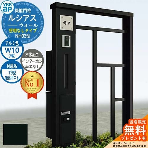 YKKap 機能門柱 ルシアス ウォールNH03型 W10 照明なしタイプ T9型・宅配ボックスセット
