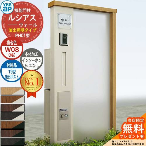 YKKap 機能門柱 ルシアス ウォールPH01型 W08 演出照明タイプ(100V照明) T9型・宅配ボックスセット
