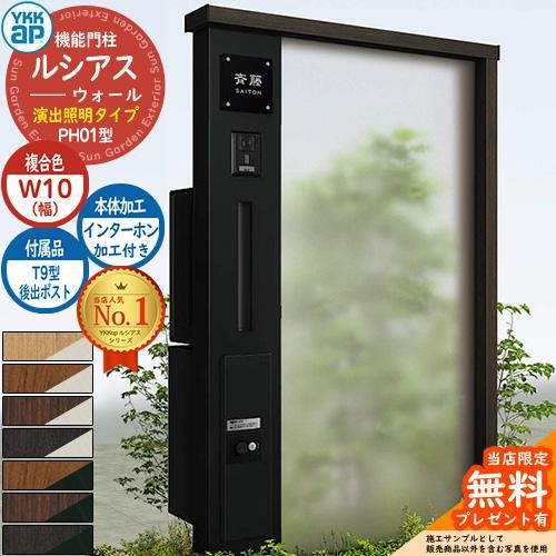 YKKap 機能門柱 ルシアス ウォールPH01型 W10 演出照明タイプ(100V照明) T9型・宅配ボックスセット