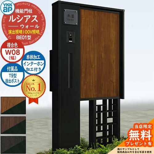 YKKap 機能門柱 ルシアス ウォールBE01型 W08 演出照明タイプ(100V照明) T9型ポストセット