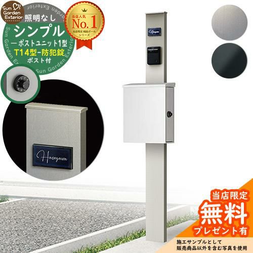 機能門柱 シンプルポストユニット1型 照明なし T14型ポスト(防犯錠)セット