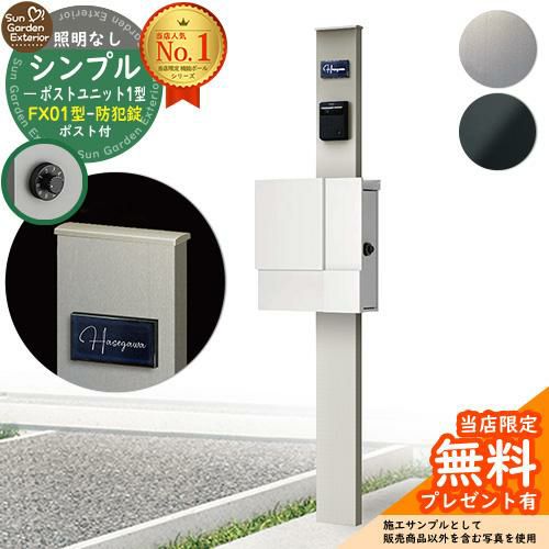 機能門柱 シンプルポストユニット1型 照明なし FX01型ポスト(防犯錠)セット