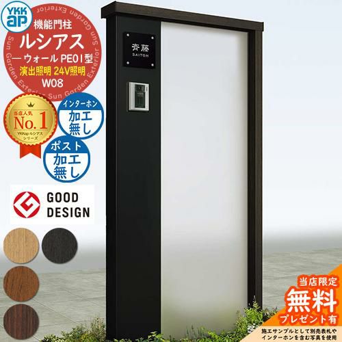 YKKap 機能門柱 ルシアス ウォールPE01型 W08 演出照明タイプ(24V照明)