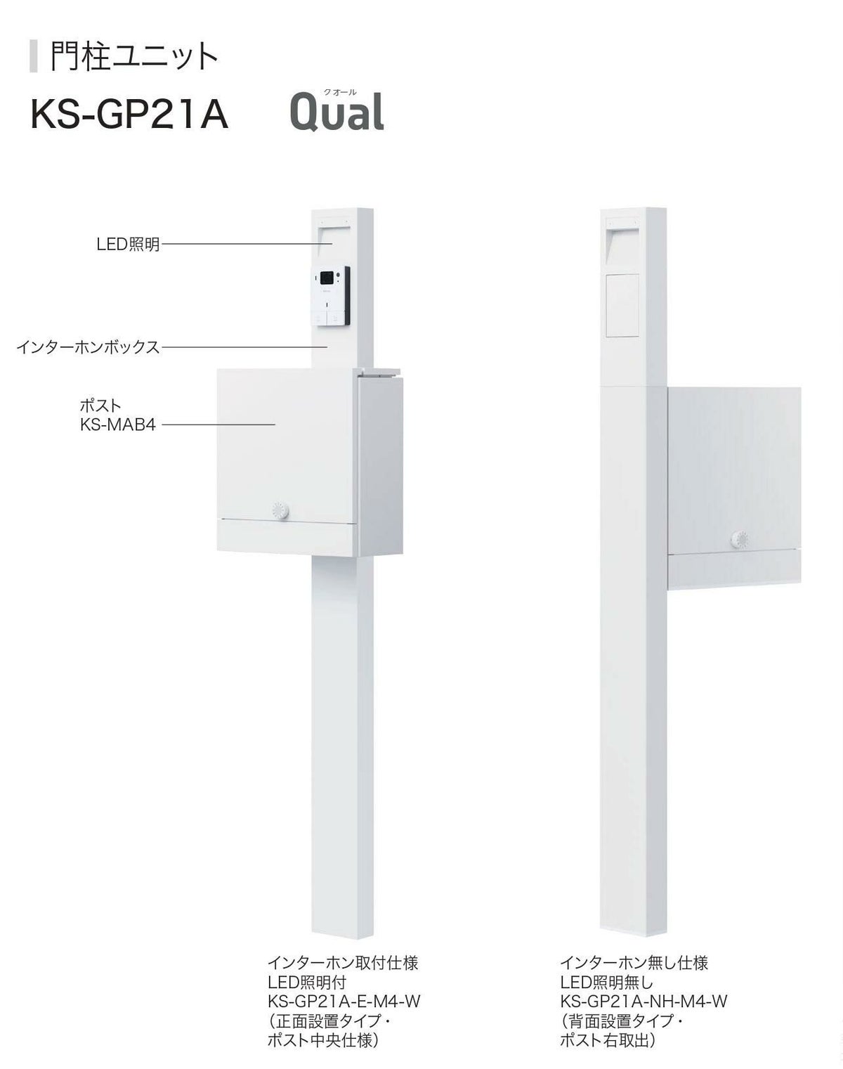シンプルポストユニット 1型 照明付き(100V照明)本体 T6B型ポスト セット 上入れ上出し