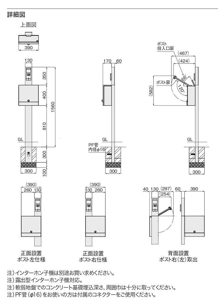 大人気のパナソニック クリアスFFや三協アルミ ポスト等も取付可能!YKKap シンプレオ ポストユニット 1型 比較品