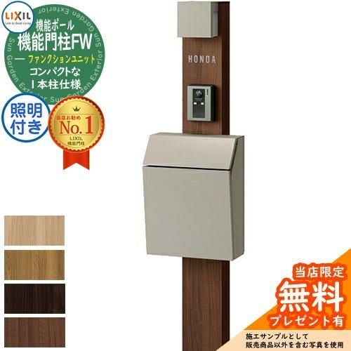デザインポストユニット 1型 照明付き(100V照明)本体 FX01型ポスト(簡易錠) セット 上入れ横出し