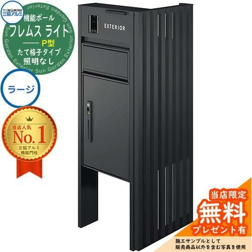 機能ポール フレムス Light サイドスクリーン付きタイプ たて格子タイプ 本体:形材タイプ サイドスクリーン:形材色 照明なし 【P型】宅配ボックス:ラージ