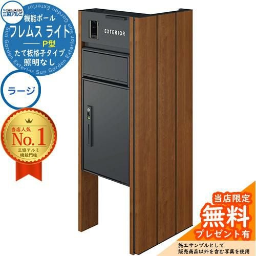 機能ポール フレムス Light サイドスクリーン付きタイプ たて板格子タイプ 本体:木調タイプ サイドスクリーン:木調色 照明なし 【P型】宅配ボックス:ラージ