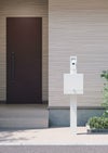 動線や設置場所に合わせポストを正面にも背面にも取付可能な機能門柱。 LED照明やインターホンの取付仕様も選択可能。ポストは防雨でダイヤル錠、大型郵便にも対応です。