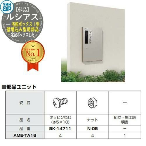 宅配ボックス 一戸建て用 大容量 【部品】ルシアス宅配ボックス1型用 壁埋込み型用部品 AME-TA16