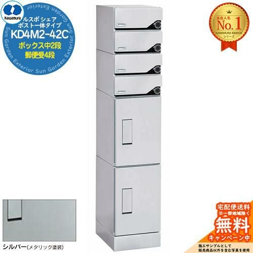 宅配ボックス ルスポ シェア RUSUPO SHARE ポスト一体タイプ ボックス中2段+郵便受4段 KD4M2-42C-□ シルバー(S)