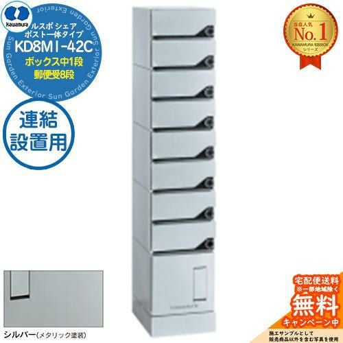 宅配ボックス ルスポ シェア RUSUPO SHARE ポスト一体タイプ ボックス中1段+郵便受8段 連結設置用 KD8M1-42C-□A シルバー(S)