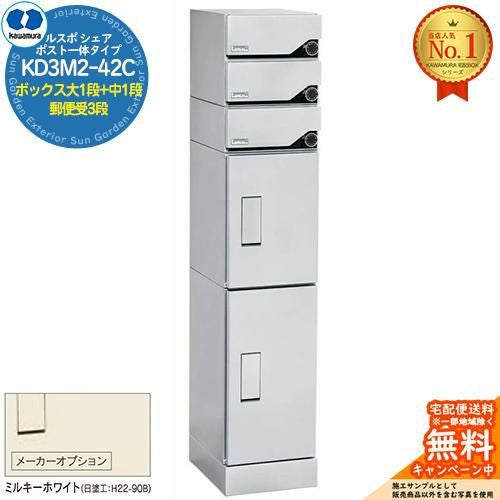宅配ボックス ルスポ シェア RUSUPO SHARE ポスト一体タイプ ボックス大1段+中1段+郵便受3段 KD3M2-42C-□ ミルキーホワイト(K)