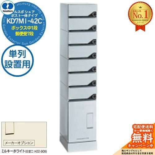 宅配ボックス ルスポ シェア RUSUPO SHARE ポスト一体タイプ ボックス中1段+郵便受7段 単列設置用 KD7M1-42C-□T ミルキーホワイト(K)
