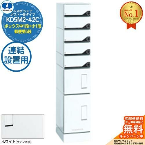 宅配ボックス ルスポ シェア RUSUPO SHARE ポスト一体タイプ ボックス中1段+小1段+郵便受5段 連結設置用 KD5M2-42C-□A ホワイト(W)