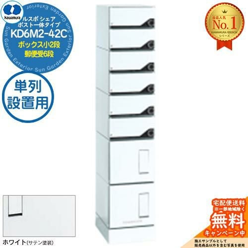 宅配ボックス ルスポ シェア RUSUPO SHARE ポスト一体タイプ ボックス小2段+郵便受6段 単列設置用 KD6M2-42C-□T ホワイト(W)