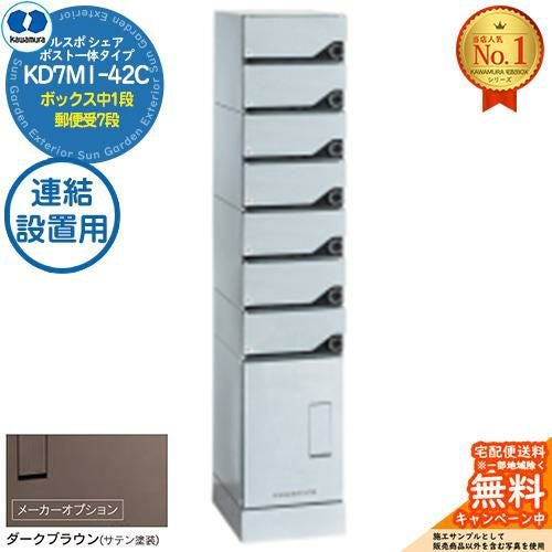 ルスポ シェア RUSUPO SHARE ポスト一体タイプ ボックス中1段+郵便受7段 連結設置用 KD7M1-42C-(R/L)A ダークブラウン(BR)