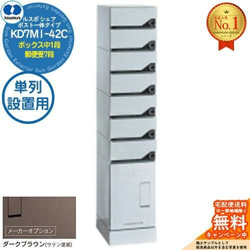 宅配ボックス ルスポ シェア RUSUPO SHARE ポスト一体タイプ ボックス中1段+郵便受7段 単列設置用 KD7M1-42C-□T ダークブラウン(BR)