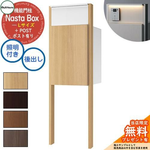 宅配ボックス 一戸建て用 大容量 Nasta Box + POST 門柱タイプ LED照明:付き 宅配ボックス:Lサイズ 木目色 支柱:木目色 前入後出