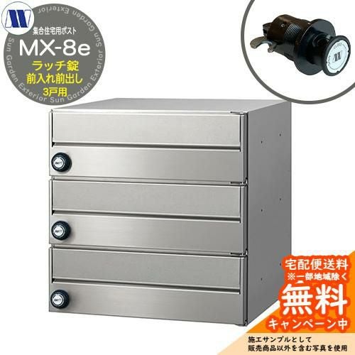 郵便ポスト 集合住宅用ポストMX-8e ラッチロック 前入れ前出し 3戸用