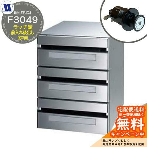 郵便ポスト 集合住宅用ポストF3049 一番星 ラッチロック 前入れ後出し 3戸用