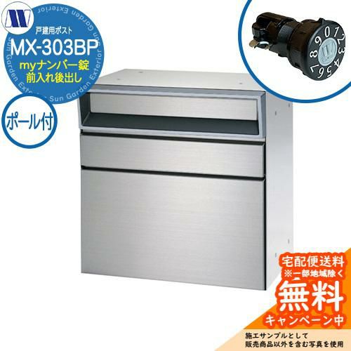 大容量 戸建用ポスト MX-303BP myナンバー錠 前入れ後出し ポール付属