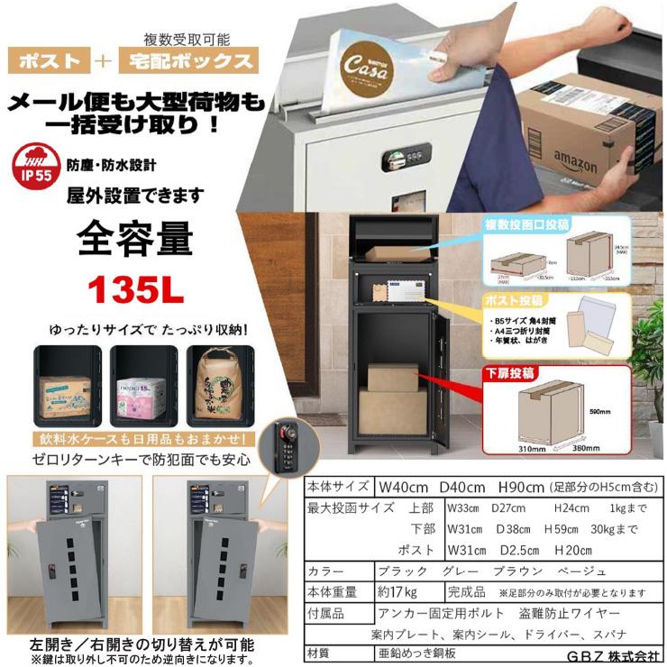 G.B.Z 株式会社 複数投函可能 一戸建て用 一体型 大容量115L 盗難防止 両開扉 簡単設置 自宅用 防水 防塵 配達ボックス 不在受取 選べる4色