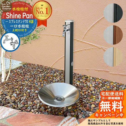 ユニソン スプレスタンド70 蛇口1個セット (木目調) + シャインパン 【ステンレス製 水受け 立水栓セット】