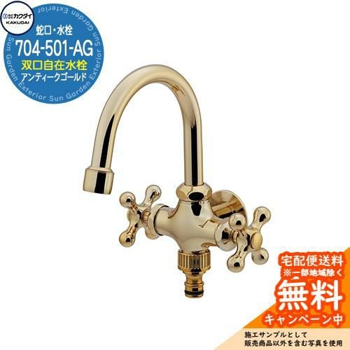 双口横型スワン水栓 704-501-AG アンティークゴールド