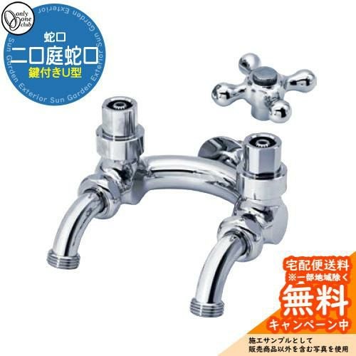 蛇口 鍵付きU型二口庭水栓(メッキ)