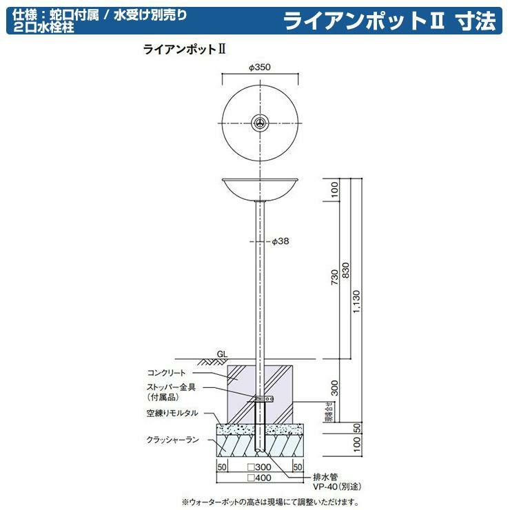 パレット EX柱(2口) 下取出し 二口水栓柱 スクエアパン ガーデンパンセット カラー:ホワイト HI-P16WR×940