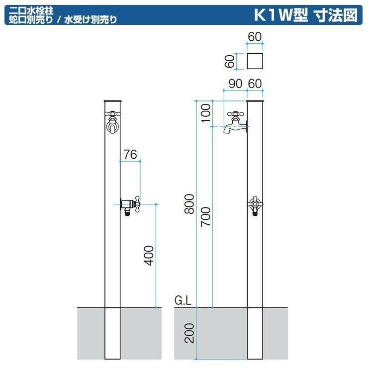 パレット EX柱(2口) バルブソケット接合 二口水栓柱 スクエアパン ガーデンパンセット 全6色 HI-A1WR×900