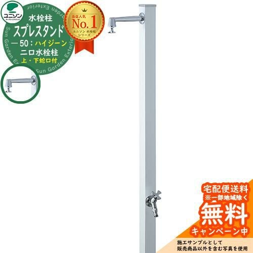 ユニソン スプレスタンド60 左右仕様 蛇口2個セット (木目調 / マットカラー / ステンレス) + シャインパン 【ステンレス製 水受け 立水栓セット】