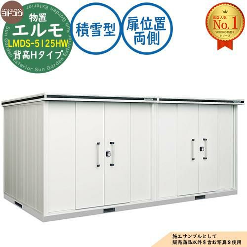 エルモ 中・大型物置 LMDS-5125HW 連結タイプ センター引き分け戸 背高Hタイプ 扉位置:両側 積雪型 間口5129×奥行2564×高さ2356