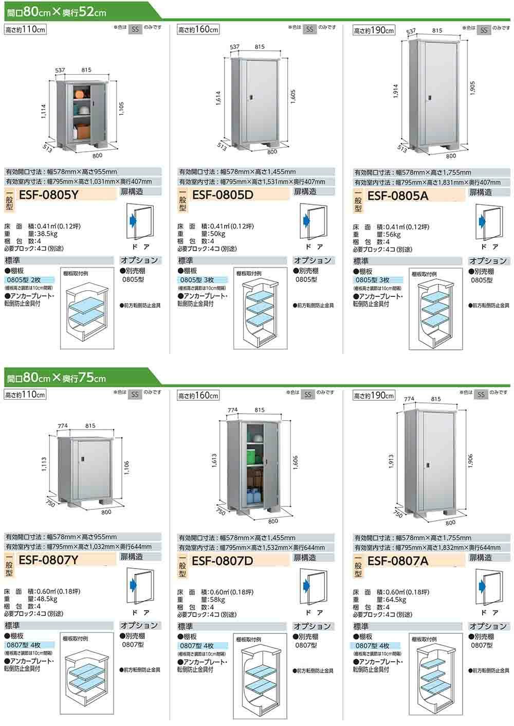 エスモ 小型物置 ESF-0807D ドアタイプ 間口800×奥行750×高さ1613