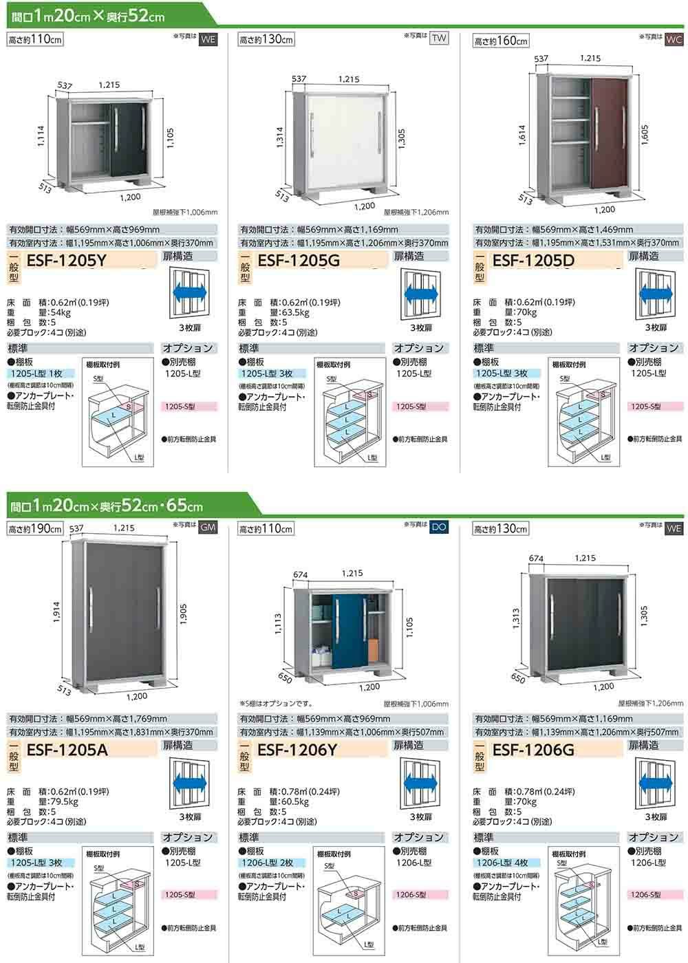 エスモ 小型物置 ESF-1207Y 3枚扉タイプ 間口1200×奥行750×高さ1113