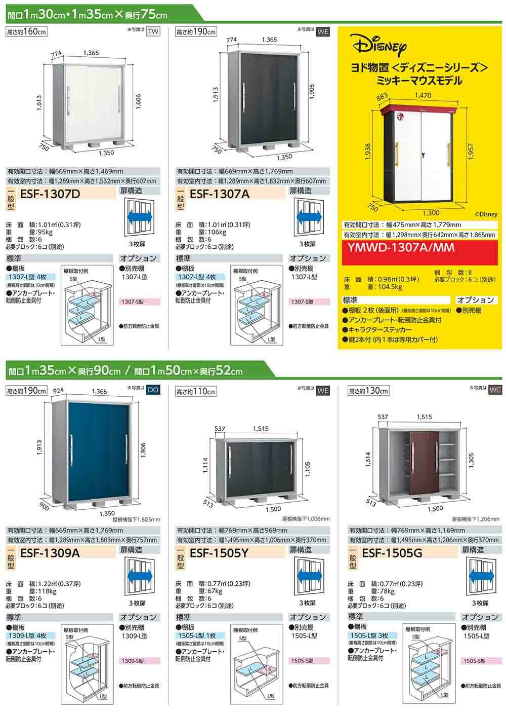 エスモ 小型物置 ESF-1307Y 3枚扉タイプ 間口1350×奥行750×高さ1113