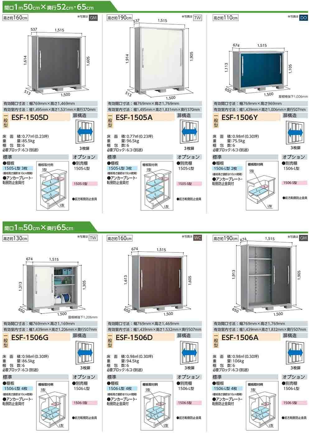 エスモ 小型物置 ESF-1506Y 3枚扉タイプ 間口1500×奥行650×高さ1113