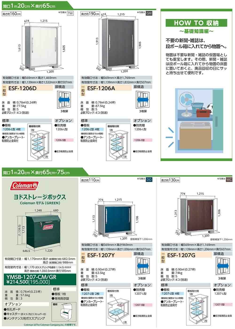 エスモ 小型物置 ESF-1906A 3枚扉タイプ 間口1950×奥行650×高さ1913