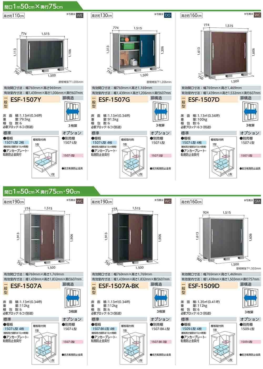 エスモ 小型物置 ESF-1507G 3枚扉タイプ 間口1500×奥行750×高さ1313
