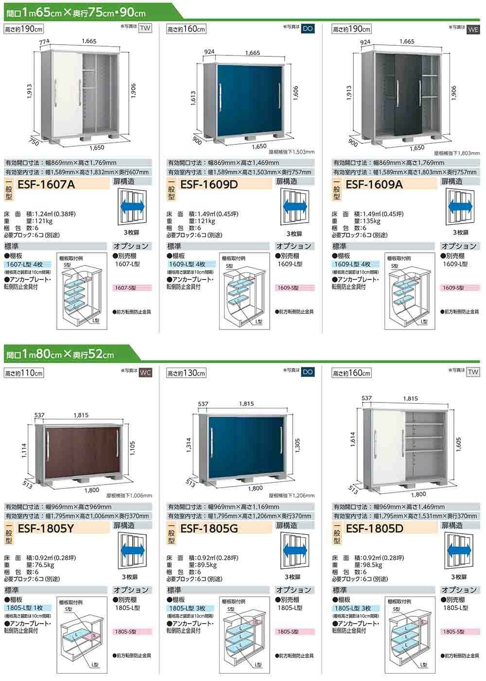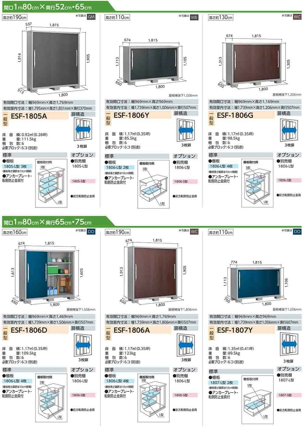 エスモ 小型物置 ESF-1805D 3枚扉タイプ 間口1800×奥行513×高さ1614