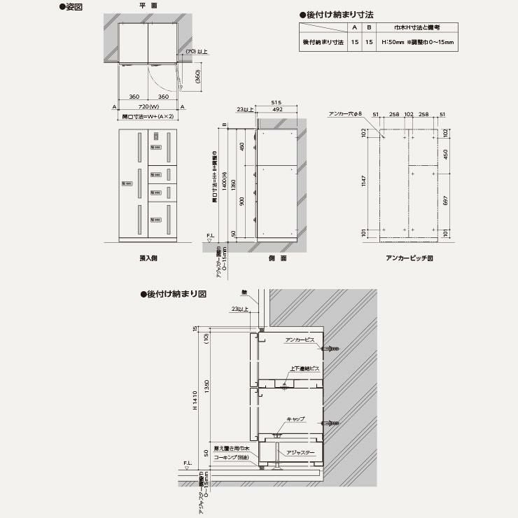 エスモ 小型物置 ESF-1305A 3枚扉タイプ 間口1350×奥行513×高さ1914