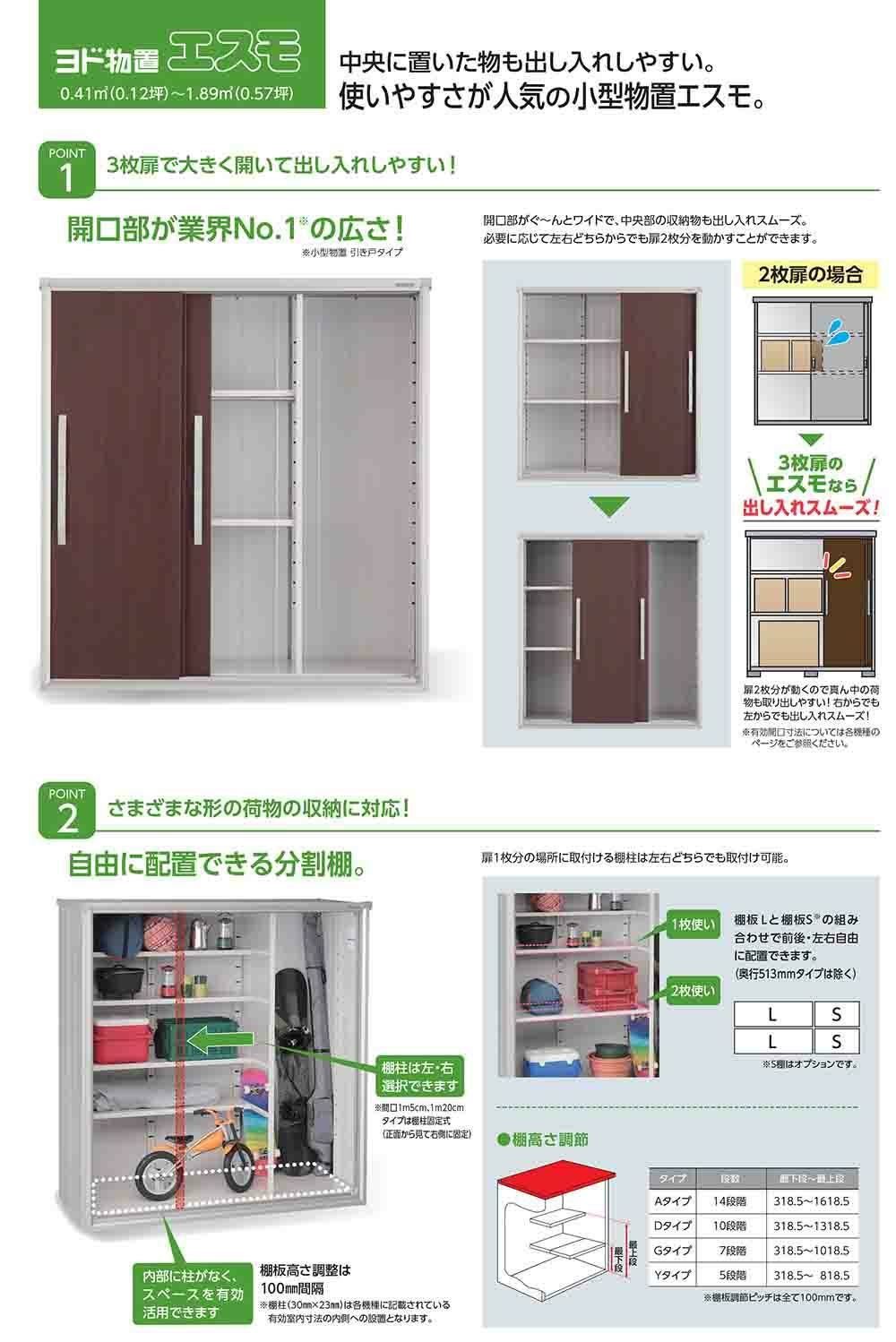 エスモ 小型物置 ESF-1005Y 3枚扉タイプ 間口1050×奥行513×高さ1114