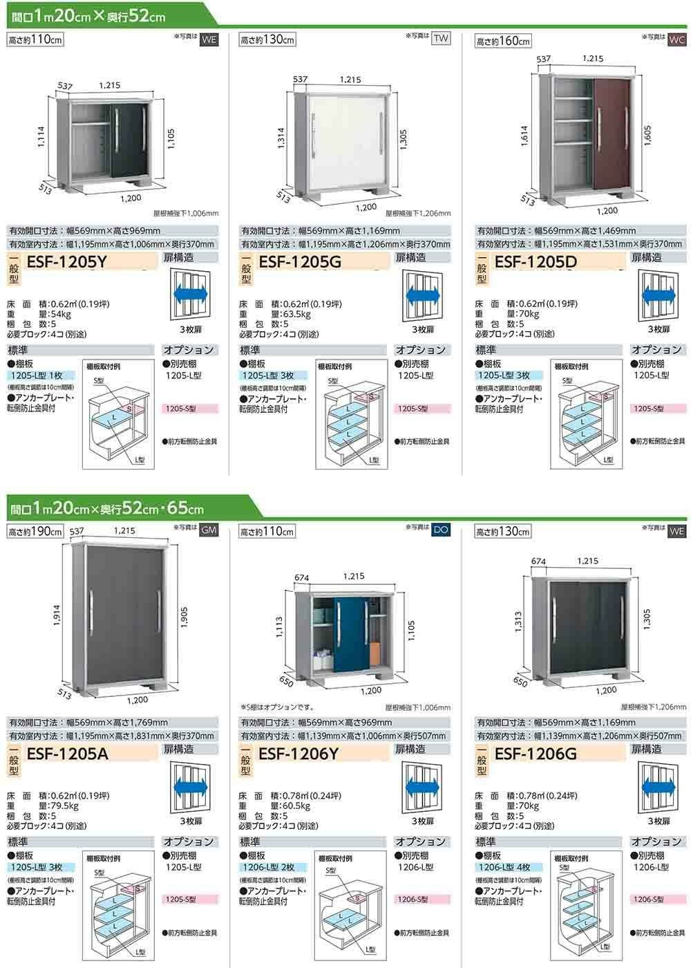 エスモ 小型物置 ESF-1206Y 3枚扉タイプ 間口1200×奥行650×高さ1113